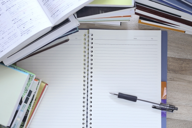 参考書、教科書、ノート、プリントを科目・種類ごとにざっと分け、